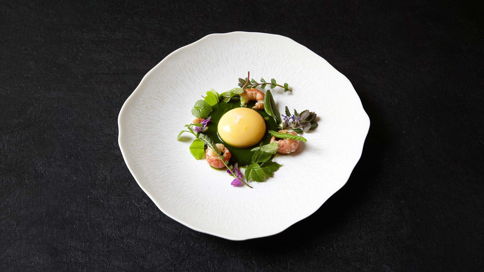 Réchauffer doucement le velouté d’oseille. Réchauffer l’épeautre avec une noix de beurre et un filet d’eau. Faire sauter, à feu vif, les écrevisses. Dans une assiette, dresser le velouté puis l’épeautre. Déposer délicatement un jaune d’oeuf préalablement assaisonné au sel de Maldon et poivre de Penja. Disposer les écrevisses en corolle avec les croûtons et les herbes.